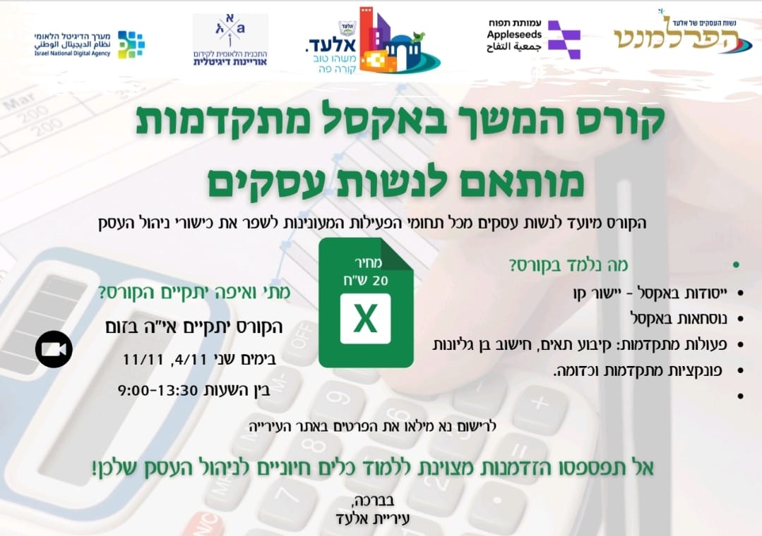 עוד ברישום לקורס אקסל לנשות עסקים
